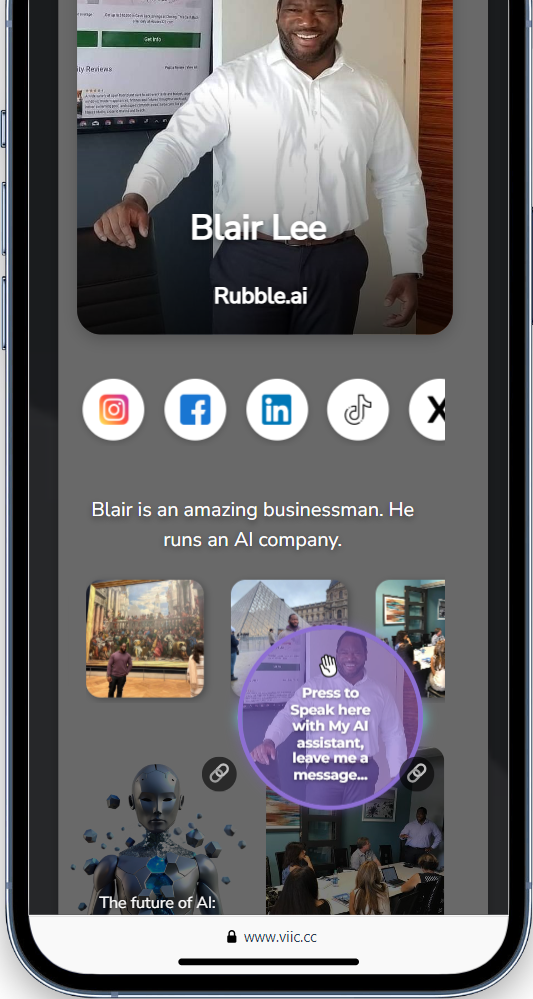 Like Linktree, but built to convert leads — includes social media, website, and AI contact button.
